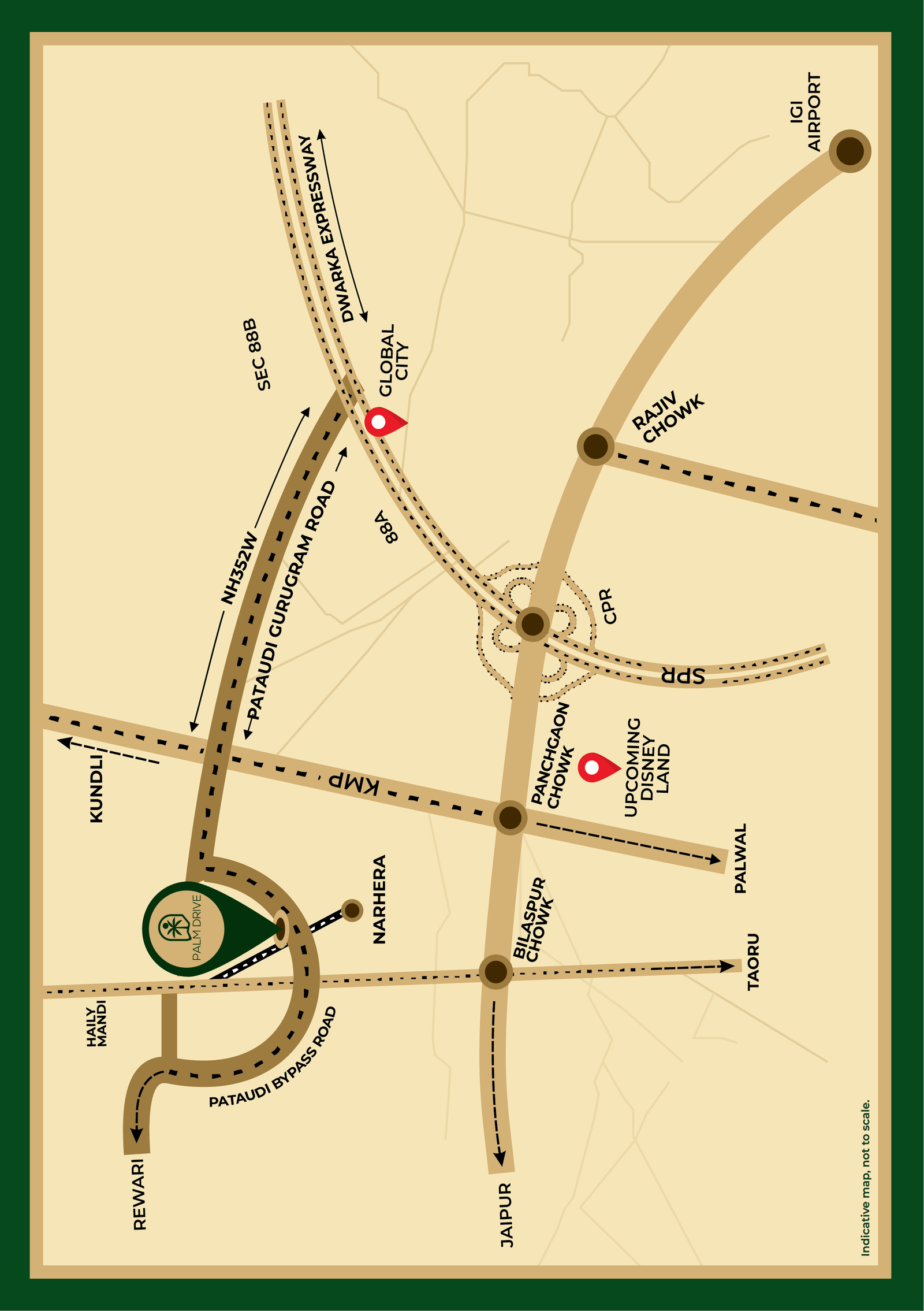 Palm Floors enjoys prime connectivity via NH-352W, KMP, NH8, and Dwarka Expressway, with top hospitals, schools, and universities nearby—ensuring convenience, healthcare, and quality education within easy reach.